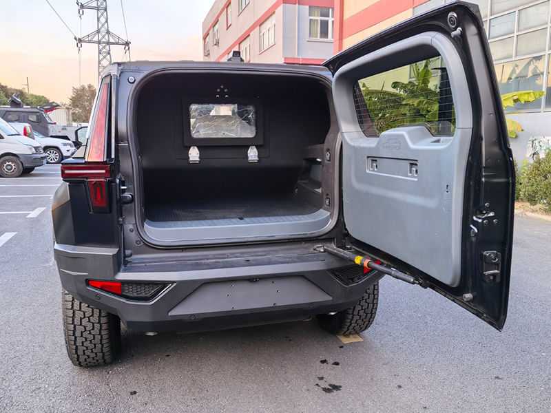 整车采用全方位安全设计,车内配备紧急逃生舱门,确保极端情况下快速撤离;搭载的防爆轮胎内置续行装置,即便被子弹击穿后仍能支持车辆继续行驶,显著提升复杂环境下的生存与机动能力。