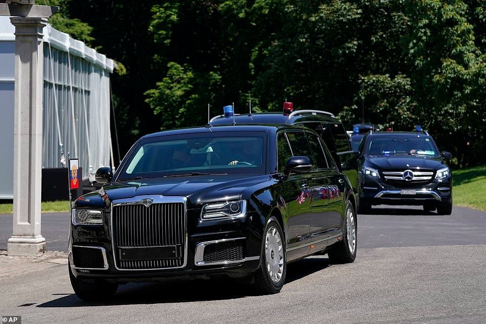 普京的车队抵达日内瓦会议地点 图源:每日邮报网站